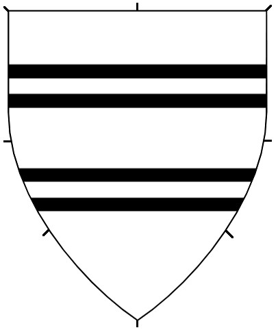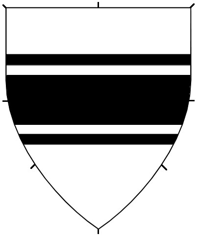 Diminuitives are multiples of the same ordinary on a device, drawn smaller than the single ordinaries. Two or three instances of a diminuitive are common. More are possible, generally, but consider using a Field Division instead. The SCA does not register single diminuitives, nor enhanced or abased ordinaries.