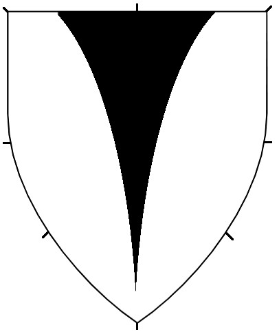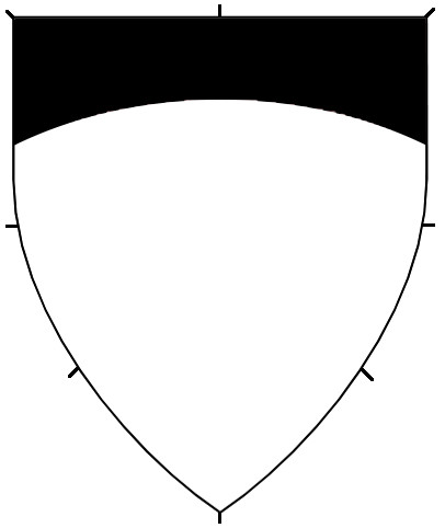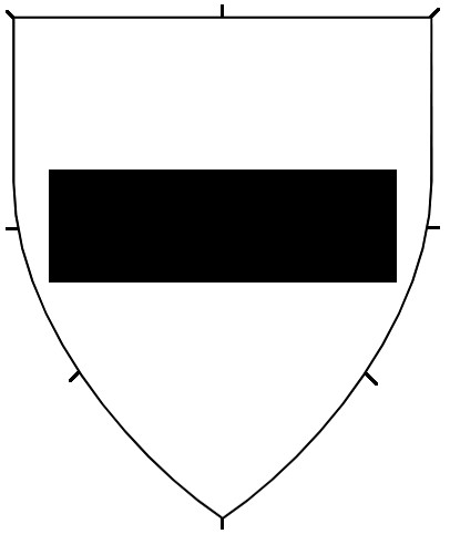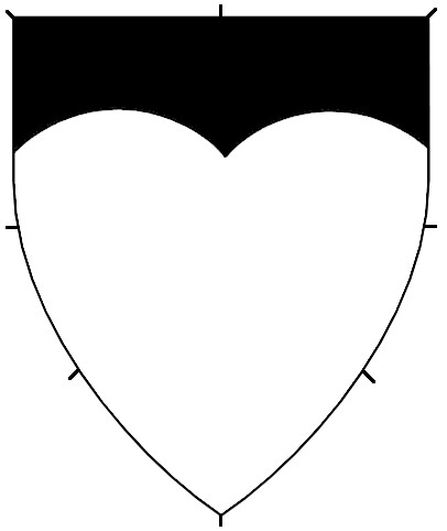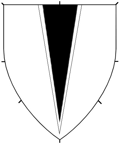 Central ordinaries can either be throughout (stretching to the sides of the shield), or couped (cut short of the edge of the shield). No difference is granted for an ordinary couped straight or along the line of the shield. The couped version of an ordinary can be used on a fieldless badge, or can be used as a geometric charge in secondary or tertiary charge groups.