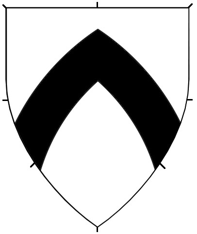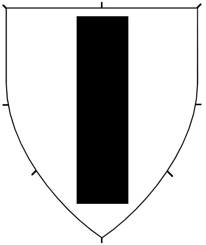 Central ordinaries can either be throughout (stretching to the sides of the shield), or couped (cut short of the edge of the shield). No difference is granted for an ordinary couped straight or along the line of the shield. The couped version of an ordinary can be used on a fieldless badge, or can be used as a geometric charge in secondary or tertiary charge groups.