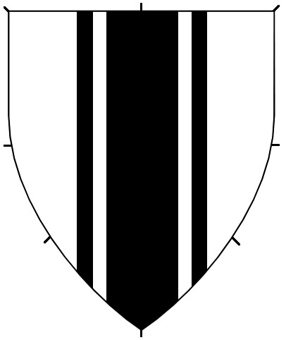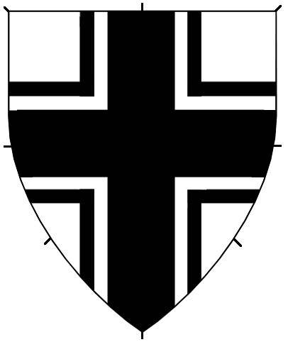 Diminuitives are multiples of the same ordinary on a device, drawn smaller than the single ordinaries. Two or three instances of a diminuitive are common. More are possible, generally, but consider using a Field Division instead. The SCA does not register single diminuitives, nor enhanced or abased ordinaries.